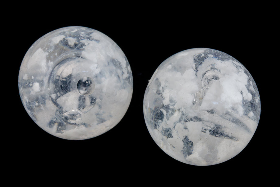 Vintage Lucite 12mm clear round bead with white "clouds".