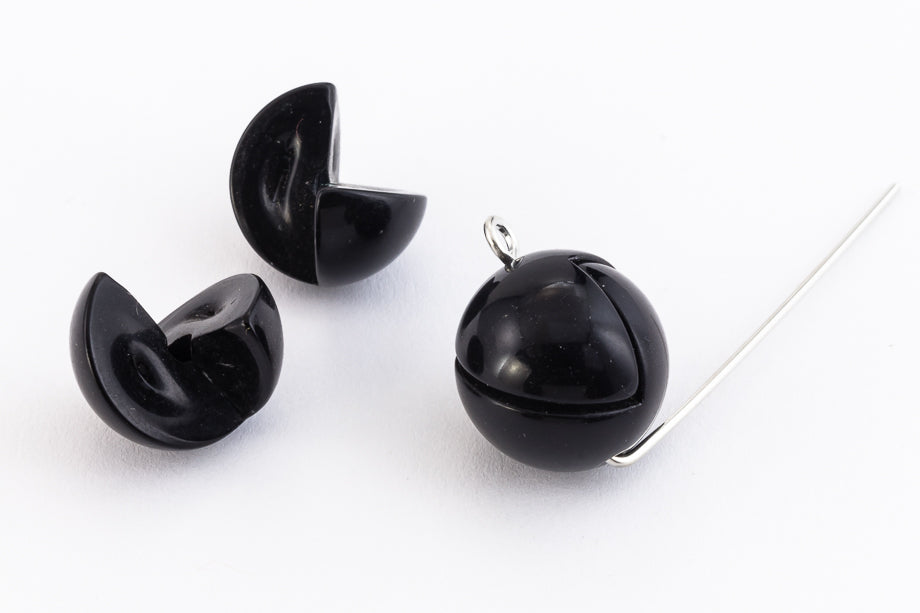 10mm x 13mm opaque black Lucite bead that locks to form a 13mm round bead.