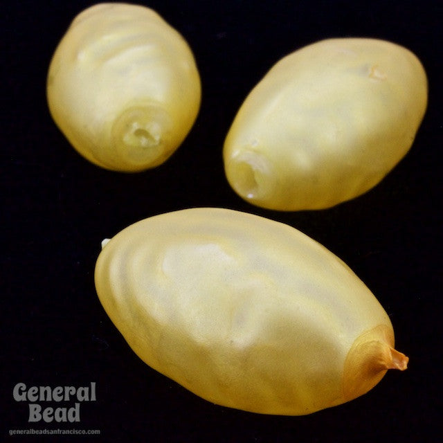 13mm x 22mm matte pearl yellow oval with lightly textured surface and 0.5mm hole.