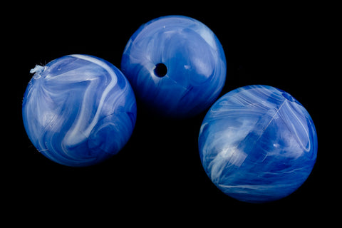 14mm round Lucite bead marbled in shades of blue and white. 1mm hole.