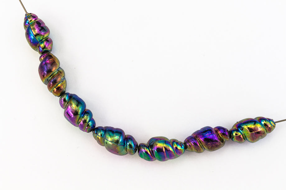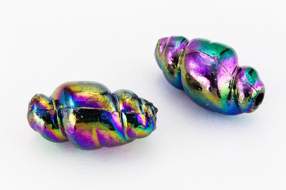 18mm x 10mm iridescent jet twisted bead with lengthwise hole.