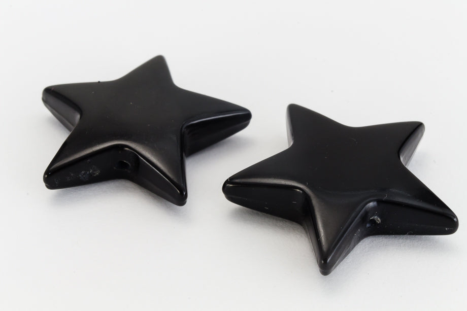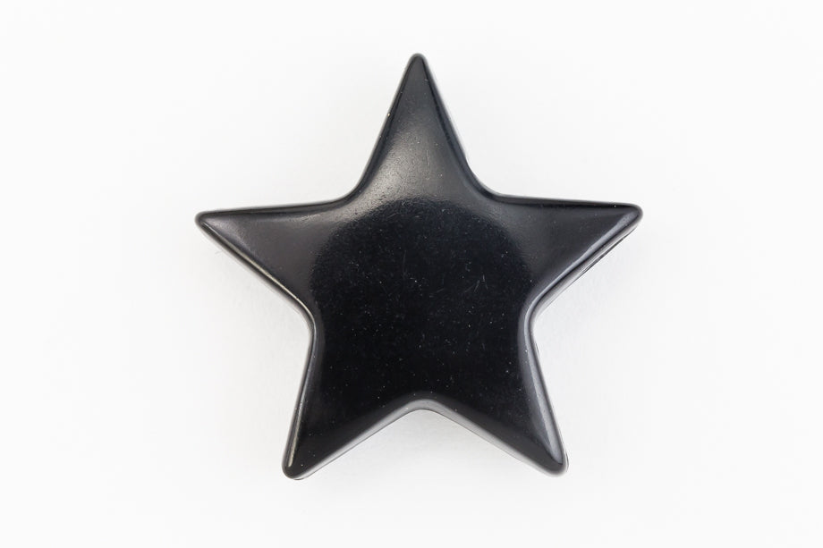 20mm wide, 5mm thick opaque black star with vertical hole.