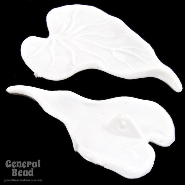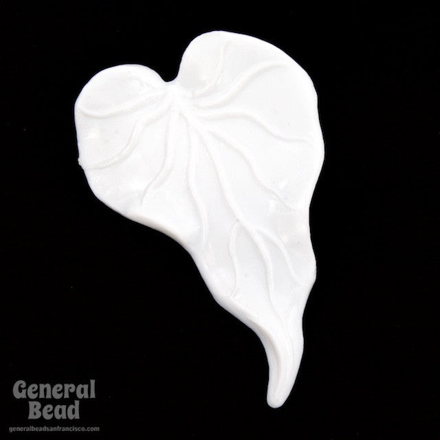 25mm x 40mm opaque white detailed Lucite leaf with button back loop.