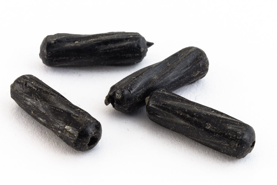 4mm x 15mm opaque black twisted tube with lengthwise hole.