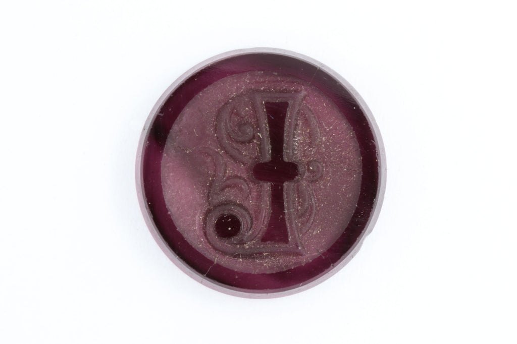 Flat back with intaglio style calligraphic letter "I".