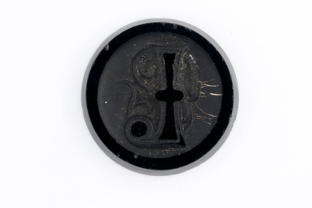 Flat back with intaglio style calligraphic letter "I".