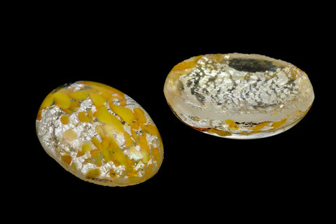 Vintage 10mm x 14mm Clear/Yellow/Silver Foil Oval Cabochon #XS118-D