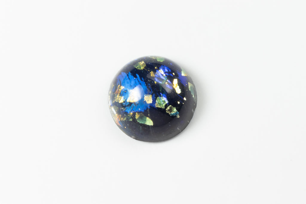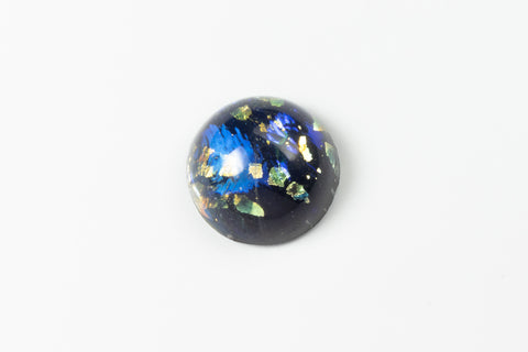 11.03mm domed round flat back.Cobalt blue with foil flecks and black coating on back.