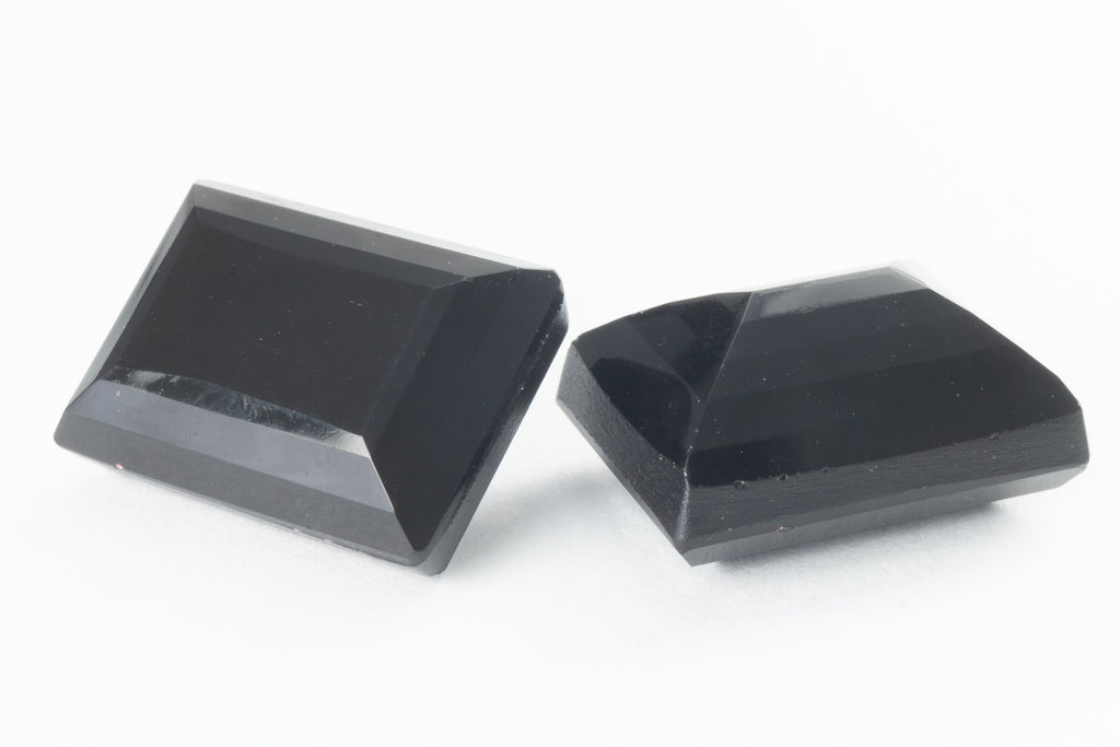 Vintage glass cabochon. 13.12mm x 18.05mm opaque black low dome rectangle point back with faceted beveled edges. Made in Germany or the Czech Republic in the 1960's or earlier. Sold individually.