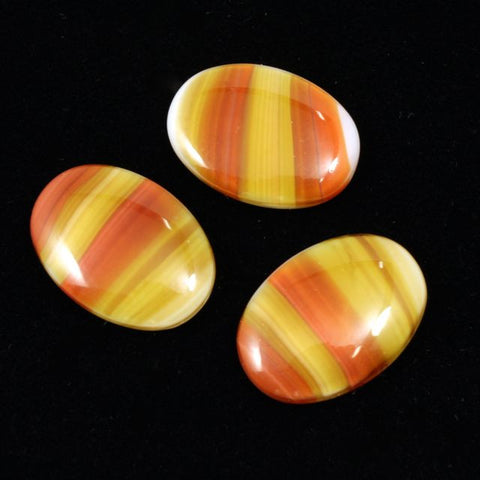 13mm x 18mm low dome oval flat back striped with bands of terracotta and ochre.