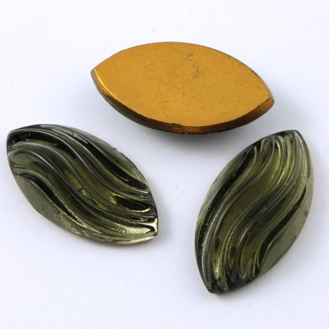 15mm x 30mm gray flat back navette with raised swirl texture.