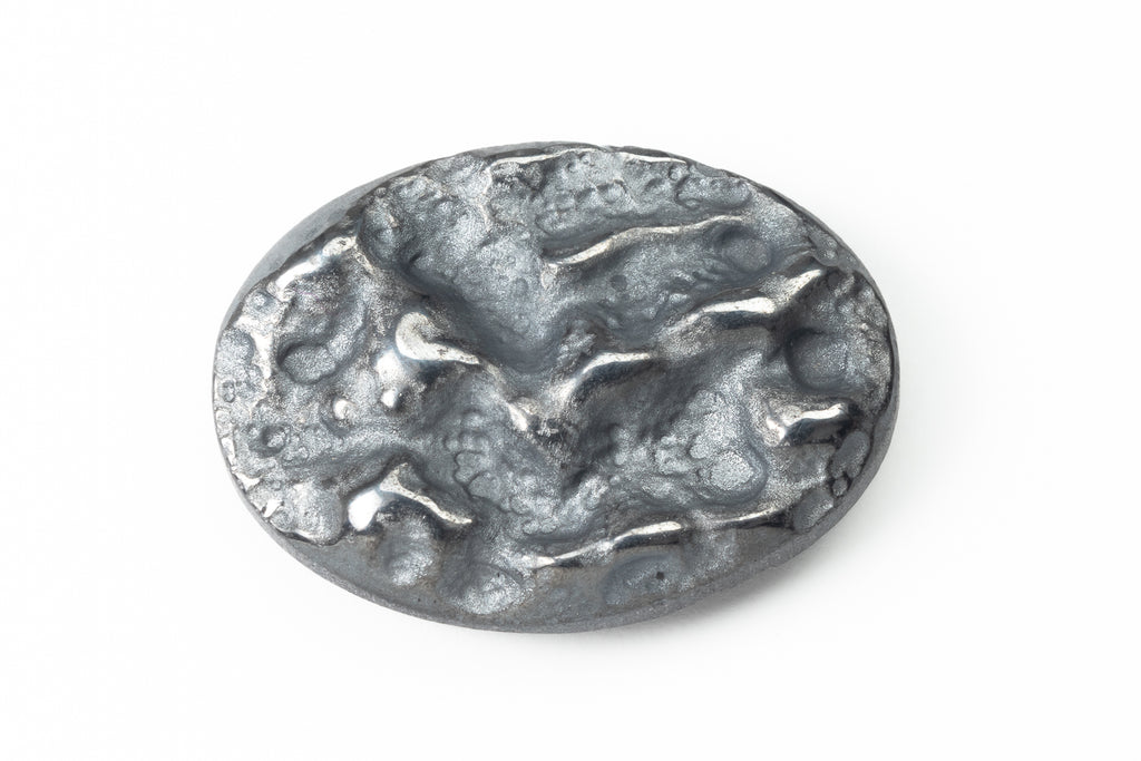 17.68mm x 24.44mm oval with unusual topological texture on both sides.
