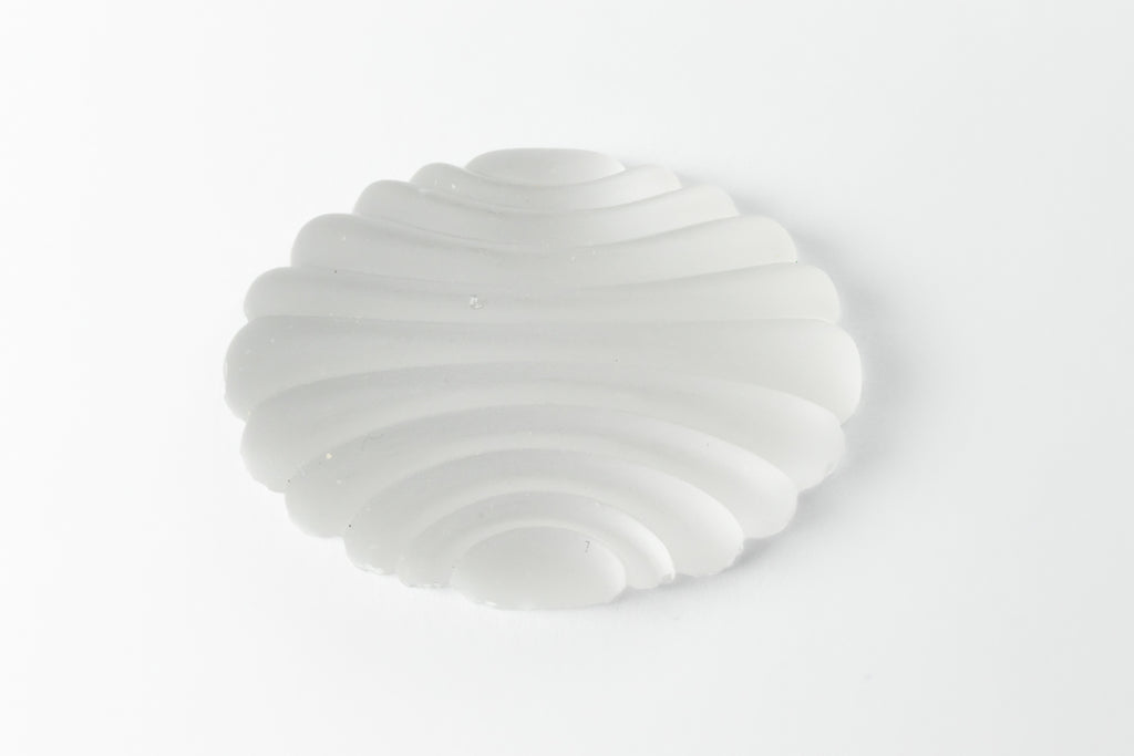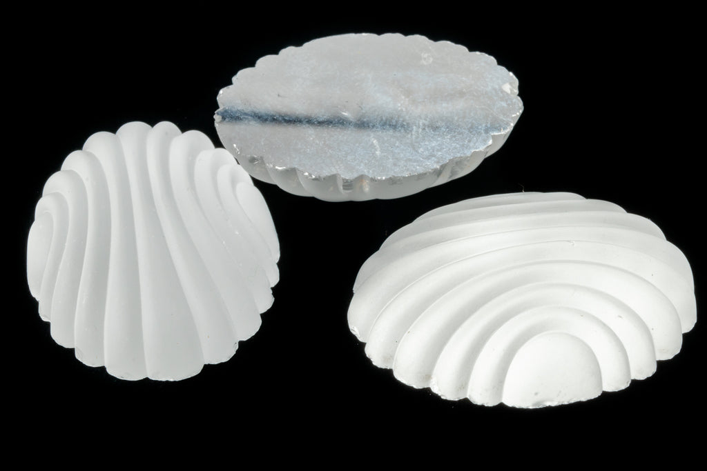 Vintage glass cabochon. 21.75mm x 29.64mm high dome Art Deco grooved oval with flat back. Matte crystal with no foil.Made in Germany in the 1950's. Sold individually.