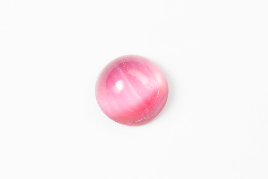 7.22mm domed round flat back.Fuchsia opal with unfoiled back.Made in Germany or the Czech Republic in the 1960's or earlier.