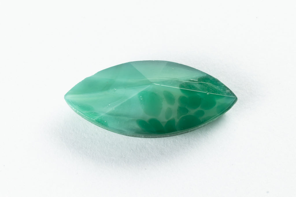 7.34mm x 15.31mm navette with surface shaped like a curved leaf and faceted point back.