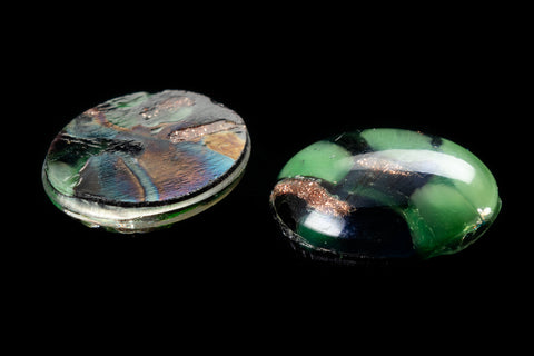 Vintage 8mm x 10mm Green/Black Oval Foil Cabochon #XS132-A