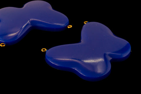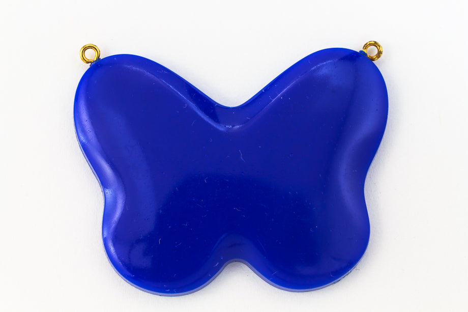 28mm x 38mm vintage Lucite opaque blue butterfly shape with brass eye pins at tip of each wing.