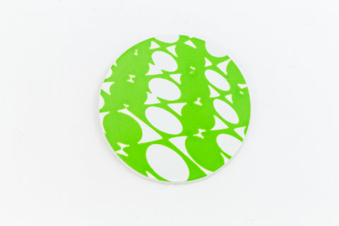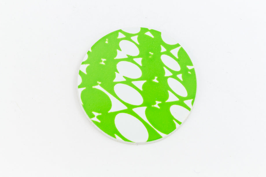 29mm white and green Op-Art flat circle.