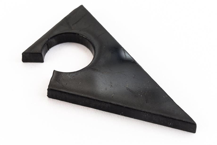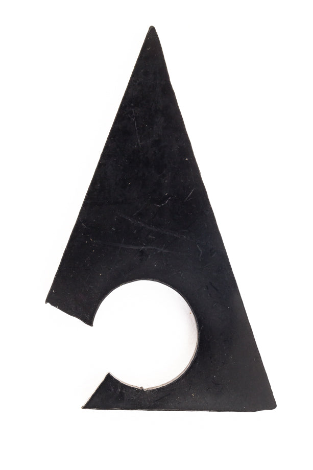 45mm x 25mm opaque black flat triangle with 15mm hole near the base and cut away section. 3mm thick.