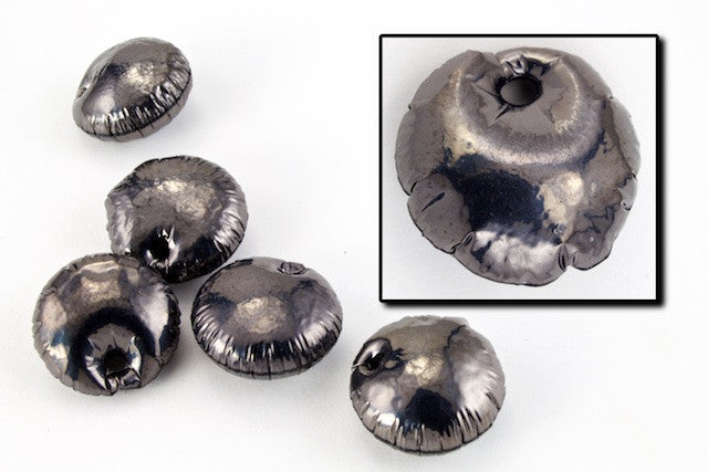 12mm shiny gunmetal circular puff sequin with hole at top.
