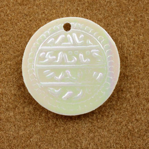 15mm Eggshell White with Delicate AB and Hieroglyphic Motif.