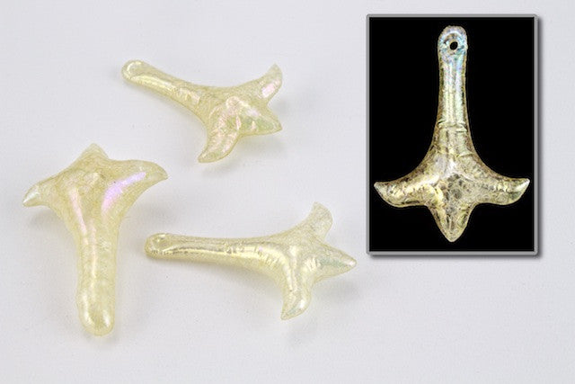 15mm x 20mm iridescent beige Fleur de Lis shape puff sequin with hole at each corner.
