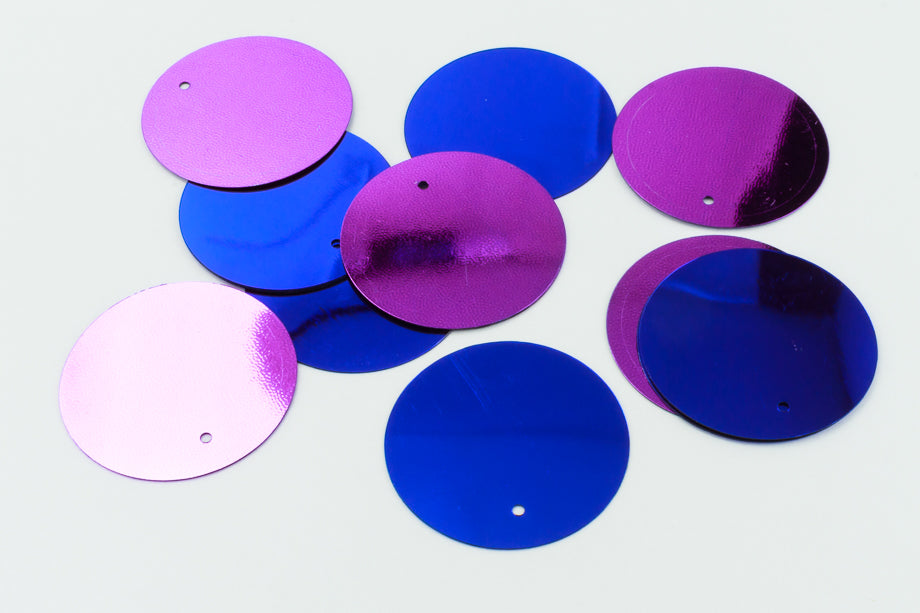 25mm flat paillette in metallic "Royal" two tone with small top hole.