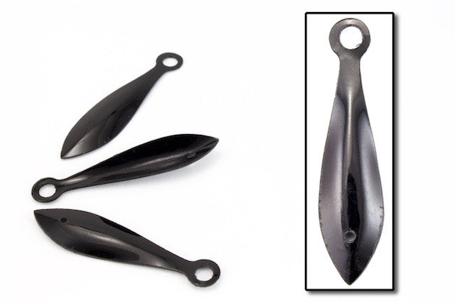 8mm x 35mm black long drop sequin with hole at top and smaller hole near tip.
