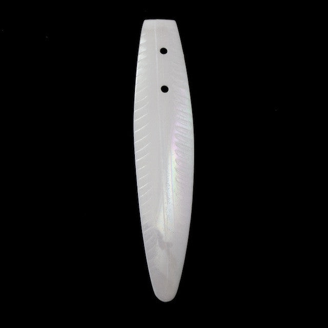 8mm x 37mm Art Deco style iridescent white symmetrical feather drop.