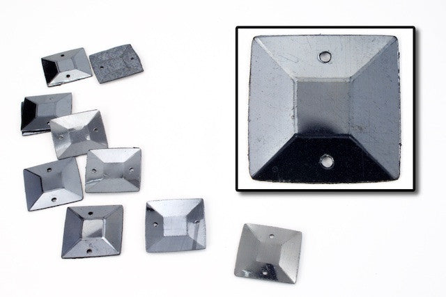 15mm domed gunmetal square sequin with two holes.