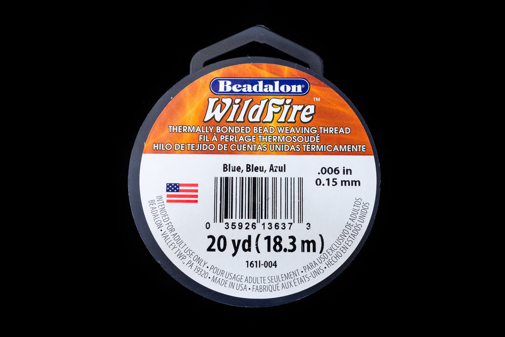 "Wildfire" bright blue thermally bonded bead thread for jewelry making.