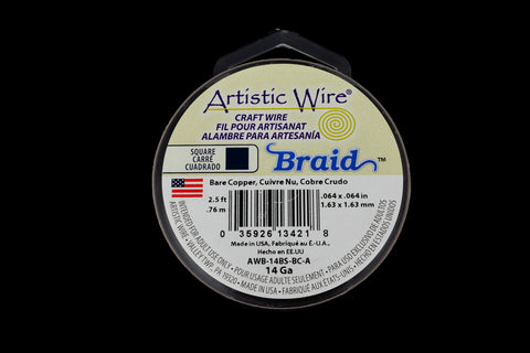 Artistic Wire. Bare Copper 14 Gauge Square Braid Wire -2.5 Ft (Spool, 6 Spools, 36 Spools) #WRB021