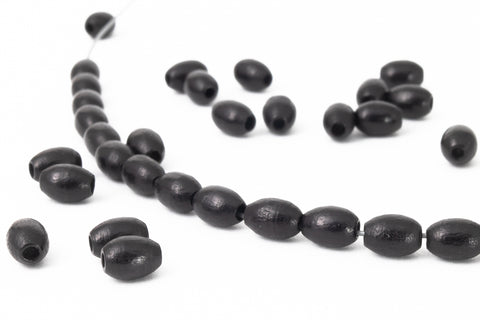 4mm x 8mm Black Oval Wood Bead (10 Pcs) #DXA008