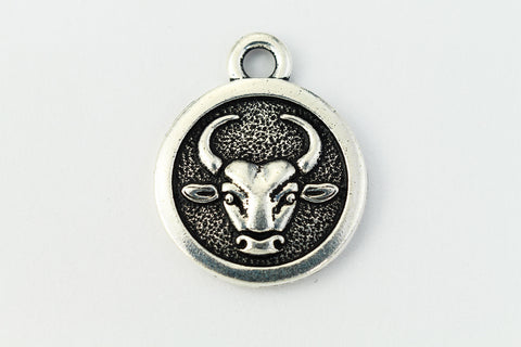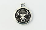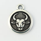 18.75mm x 15.75mm antique silver Taurus charm with 2mm loop at top.