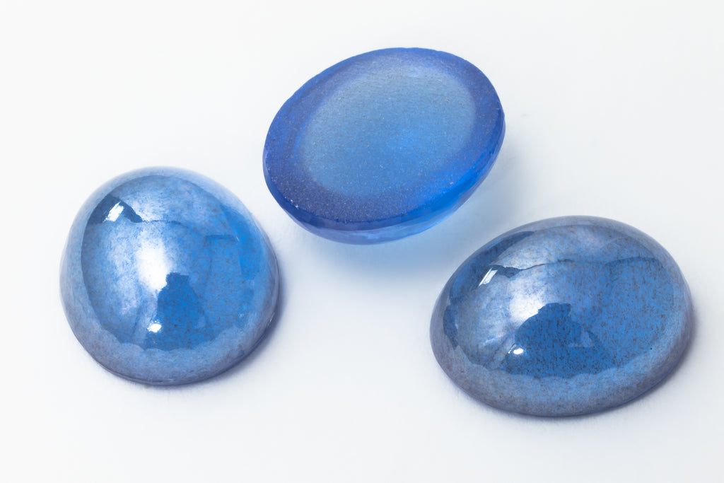 10.04mm x 12.09mm transparent luster blue oval flat back with no foil.