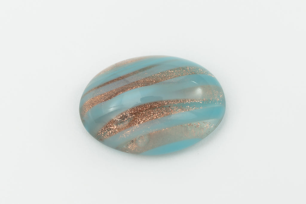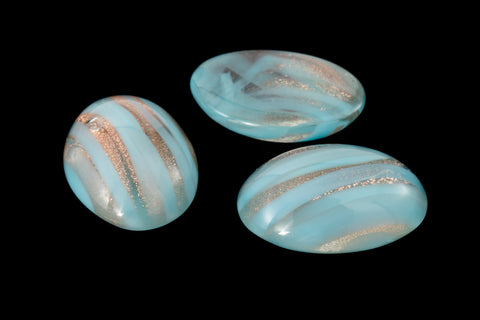 Vintage 10mm x 13.5mm Rose Gold/Sky Blue Stripe Oval Cabochon #XS99-F