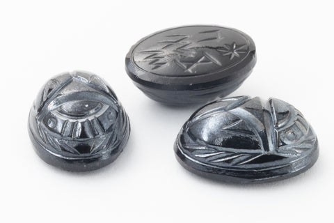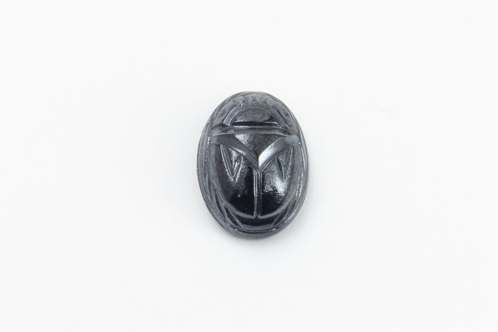 10.07mm x 13.84mm Egyptian Revival style hematite scarab with hieroglyphs on the back.