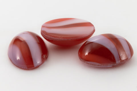 9.93mm x 14mm flat back oval with bands of carnelian red and white.