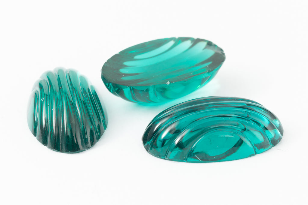 10.38mm x 18.4mm Art Deco style domed oval flat back with raised ridges.
