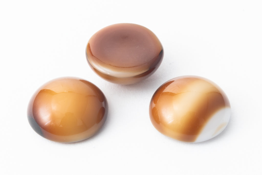 Vintage glass cabochon.11mm smooth round flat back in shades of caramel brown.Made in Germany or the Czech Republic in the 1960's or earlier.Sold individually.