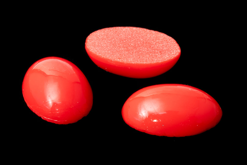 Vintage glass cabochon.10.78mm x 15.88mm bright Chinese red domed oval flat back.Made in Germany or the Czech Republic in the 1960's or earlier.Sold individually.
