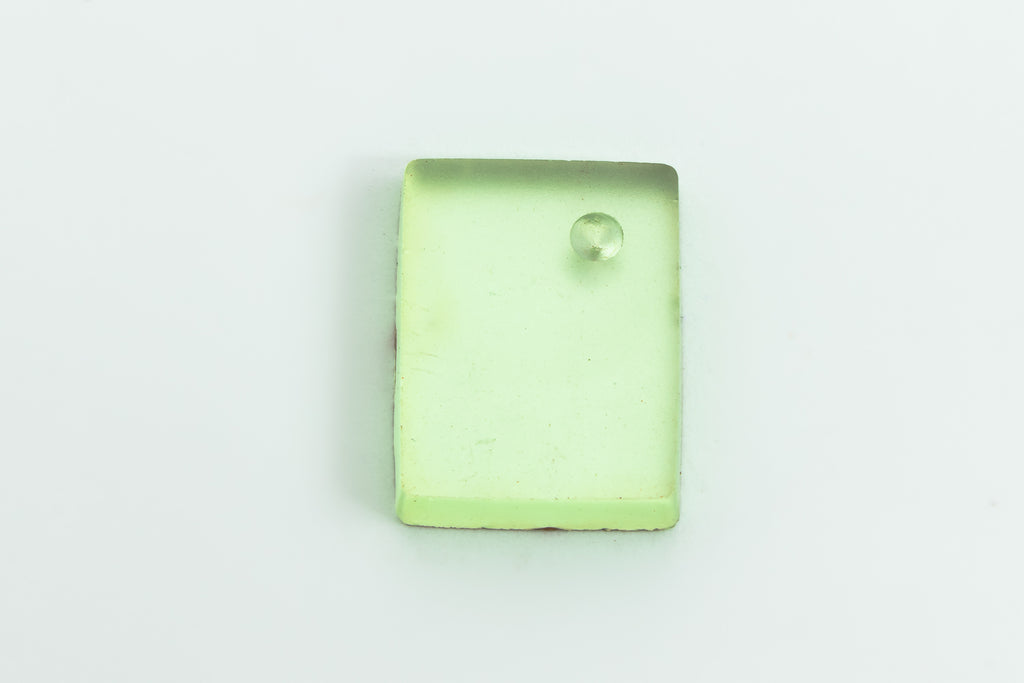 11.85mm x 15.85mm mint green frosted flat rectangle with setting for a 9ss point back rhinestone in one corner.