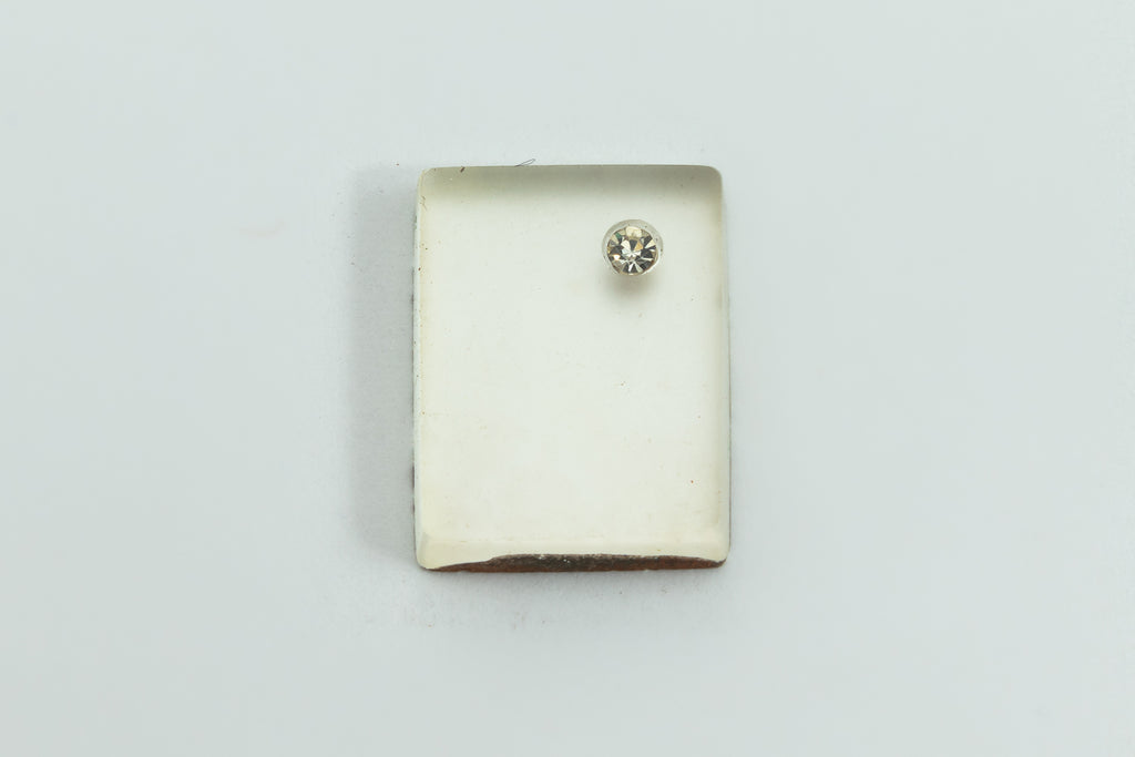 12mm x 16.08mm matte crystal flat rectangle with crystal rhinestone in one corner.