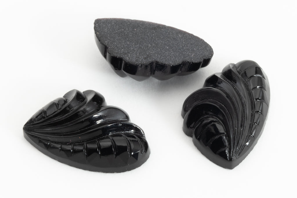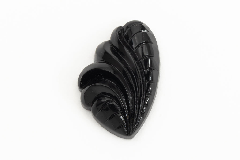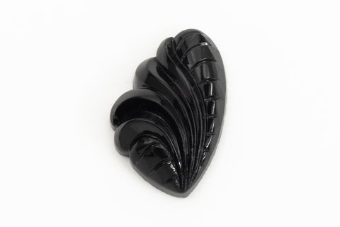 11.6mm x 17.86mm opaque black flat back shaped like an Art Deco style feather plume.