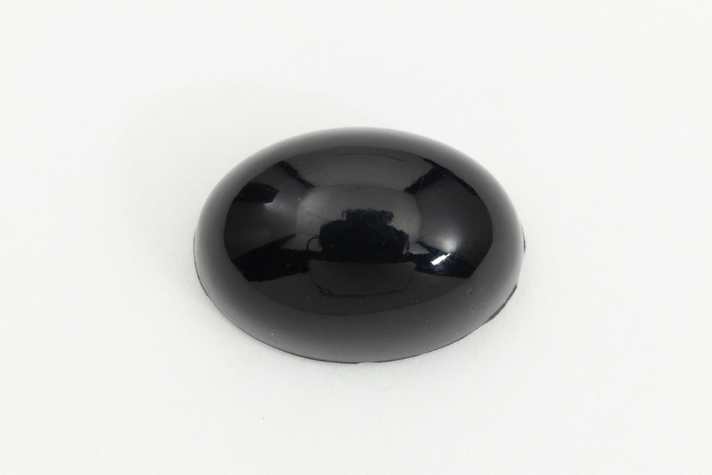 Vintage glass cabochon.12.79mm x 17.95mm opaque black high dome flat back oval.Made in Germany or the Czech Republic in the 1960's or earlier.Sold individually.