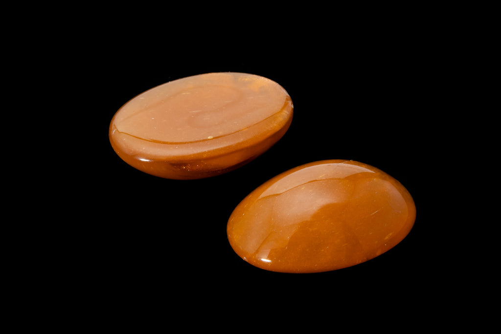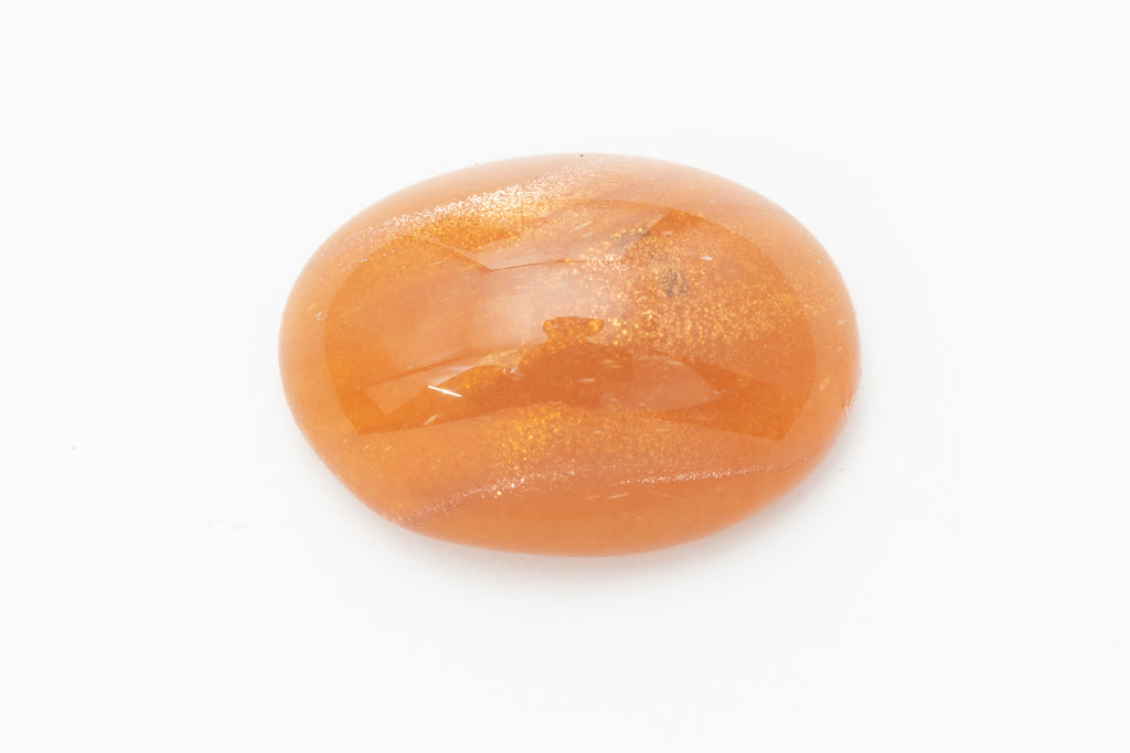 12.84mm x 17.66mm caramel oval flat back with shimmering gold flecks.