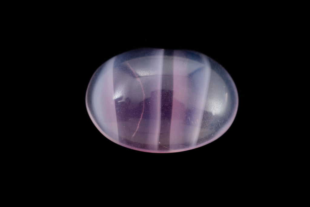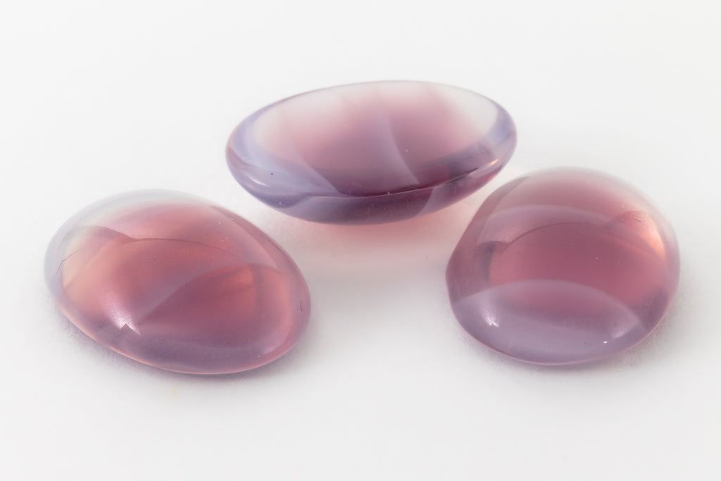 13.18mm x 17.9mm unfoiled clear flat back oval striped with bands of purple and white.