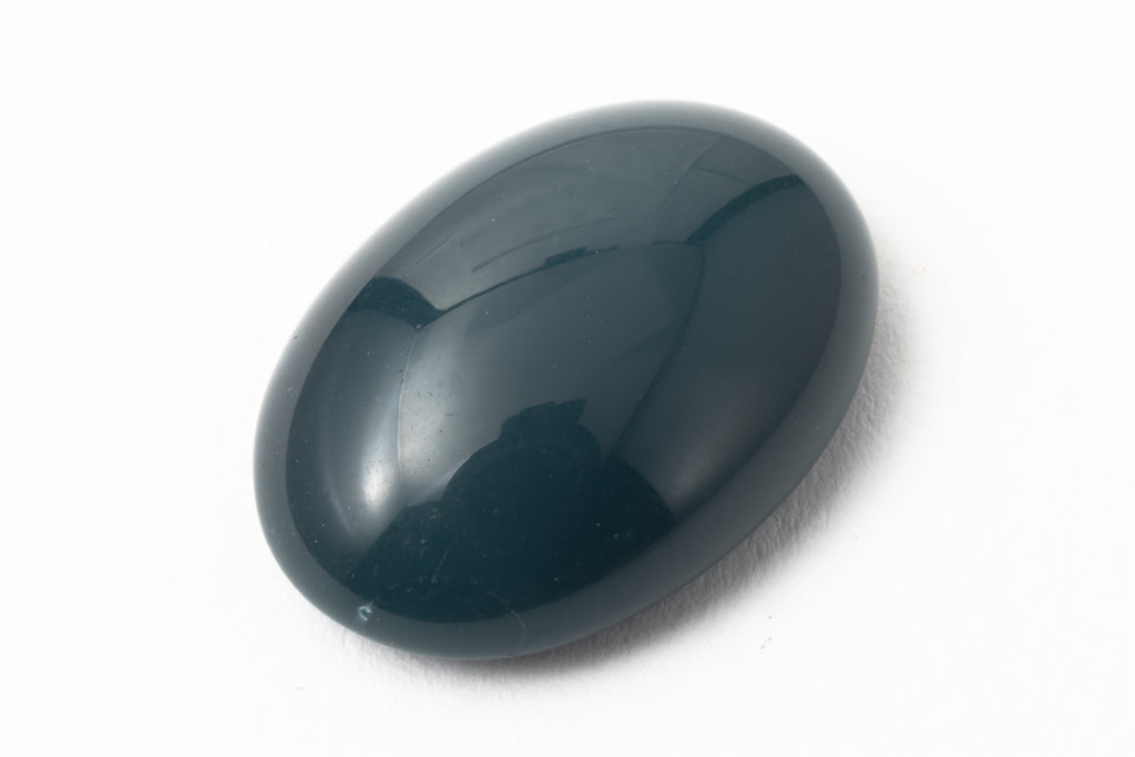 Vintage glass cabochon. 12.98mm x 18.15mm domed oval flat back.Opaque dark teal.Made in Germany or the Czech Republic in the 1960's or earlier.Sold individually.