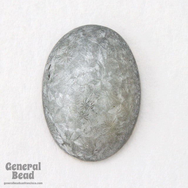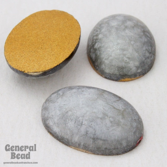 13mm x 18mm smooth domed oval with mottled silver and gray "frost" finish.