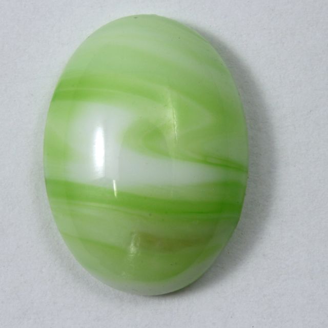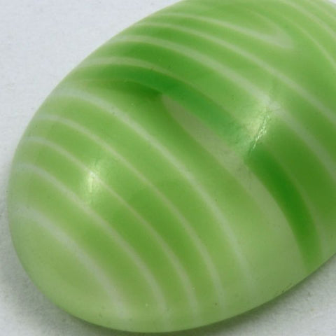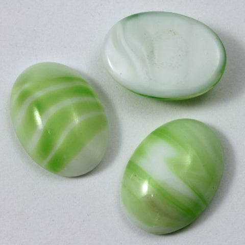 13mm x 18mm opaque white flat back oval with green stripes and swirls.